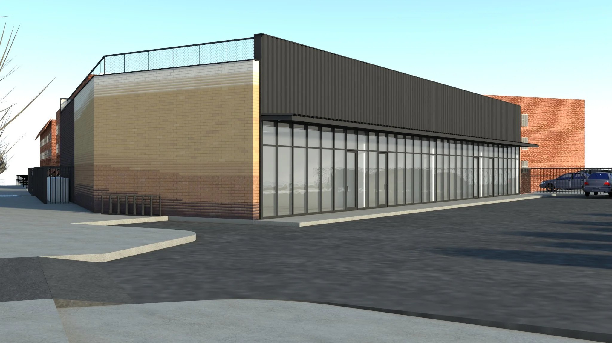 Unfortunately the brick tile concept was abandoned. Covid and inflation blew a hole in the project budget and the facade was downgraded to EIFS while the building was in construction.